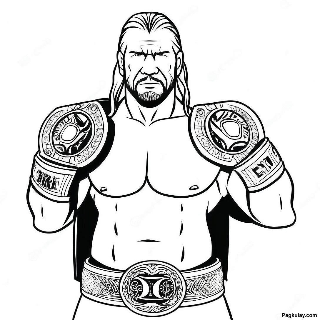 Download Printable PDF of 3d Triple H Na Hawak Ang Dalawang Sinturon Na Pahina Ng Kulay