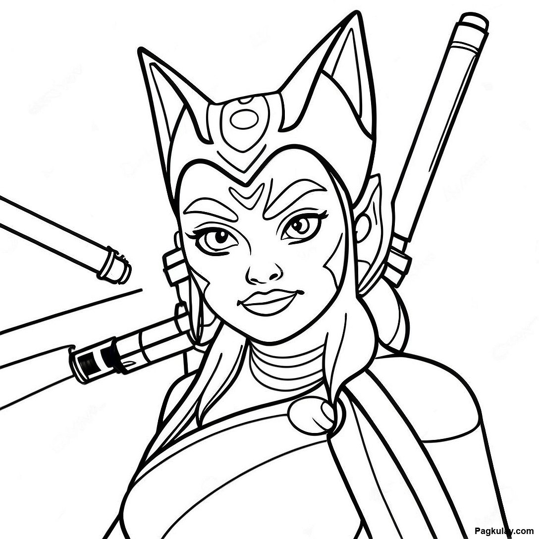 Ahsoka Tano Na May Mga Lightsaber Na Pahina Ng Kulay