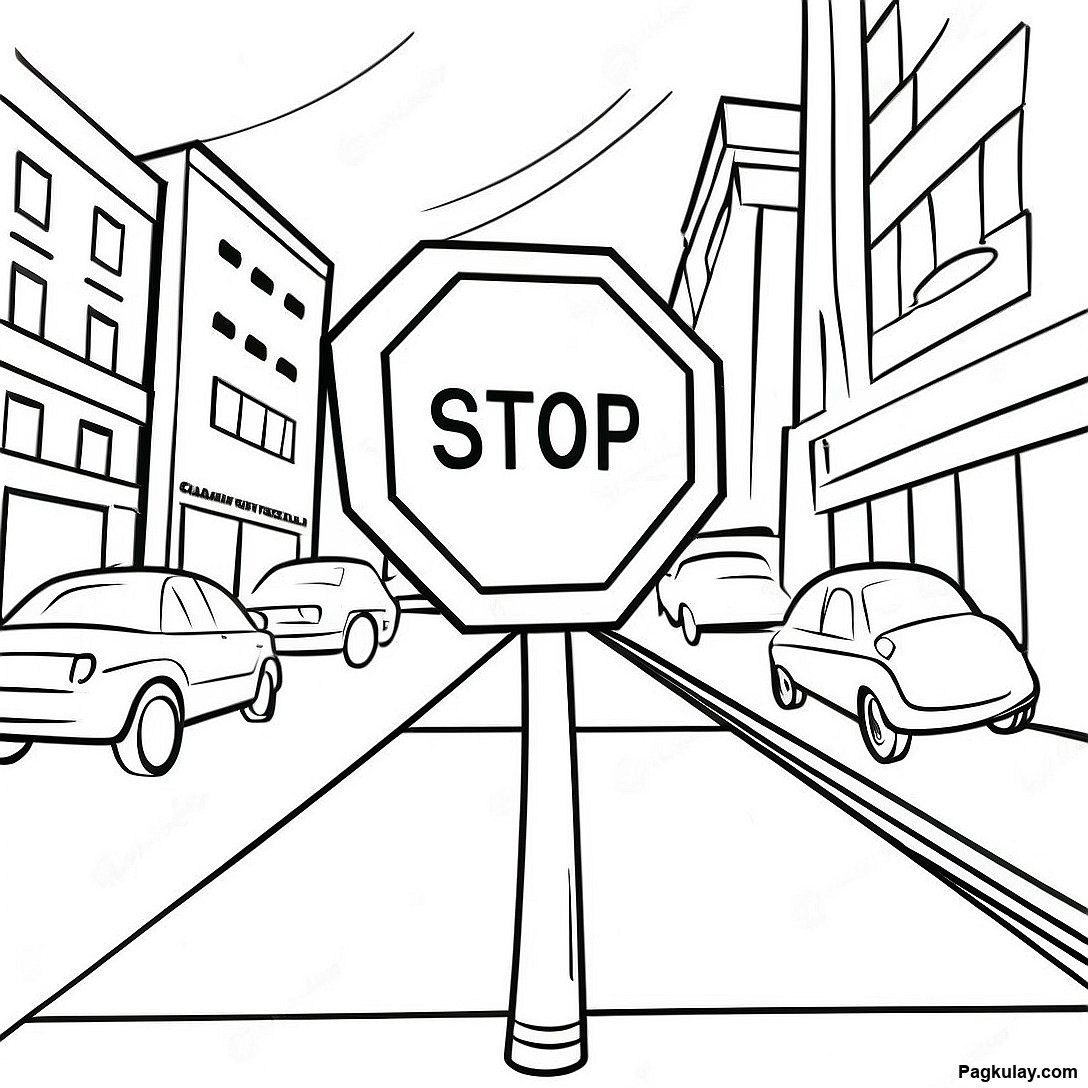 Download Printable PDF of Cartoon Stop Sign Sa Isang Lungsod Pahina Ng Kulay