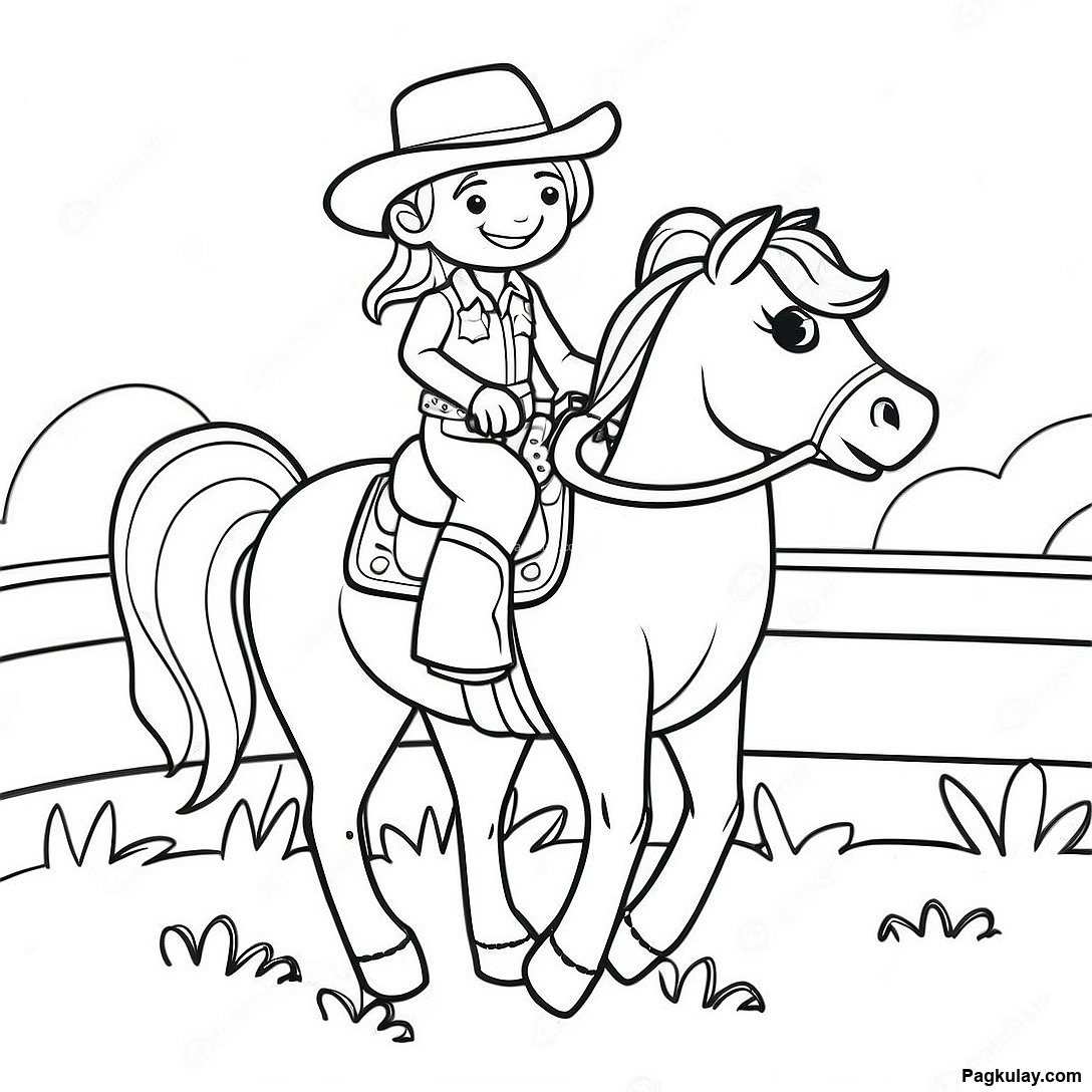 Cute Na Cowgirl Na Nakasakay Sa Kabayo Pahina Ng Kulay 76320 19209