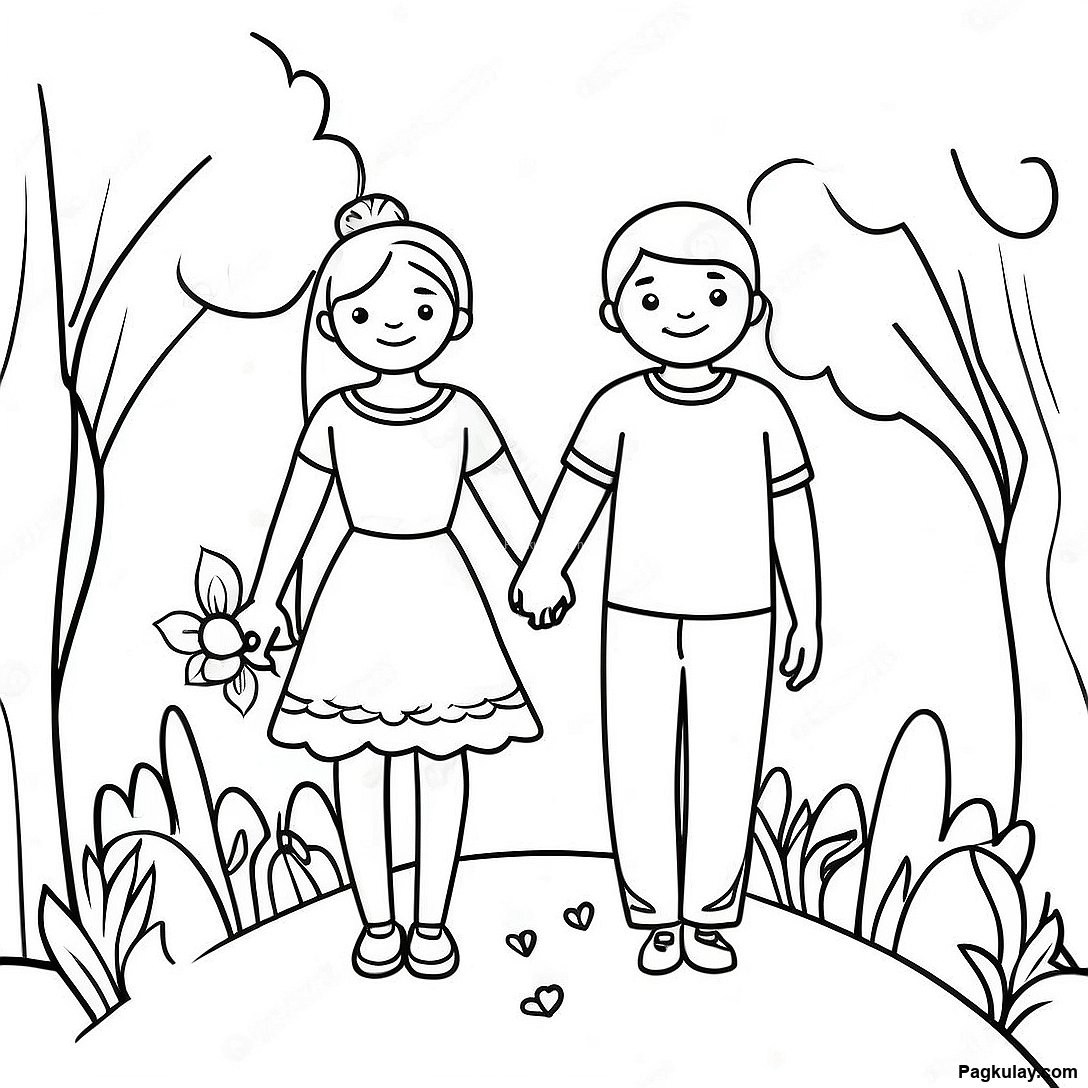 Cute Na Magkasintahan Na Magkahawak Ng Kamay Pahina Ng Kulay