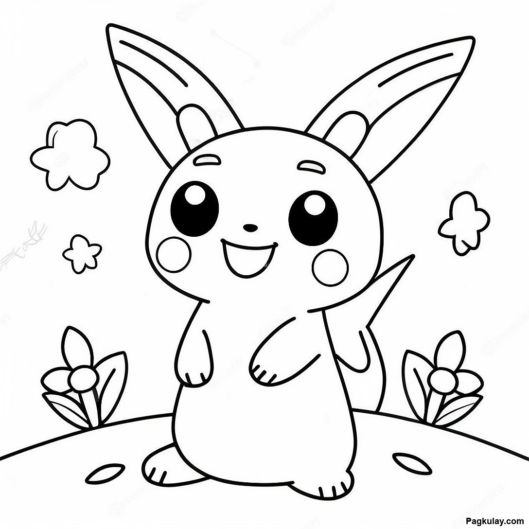 Masayang Pikachu sa Larangan ng mga Bulaklak na Pahina ng Kulay