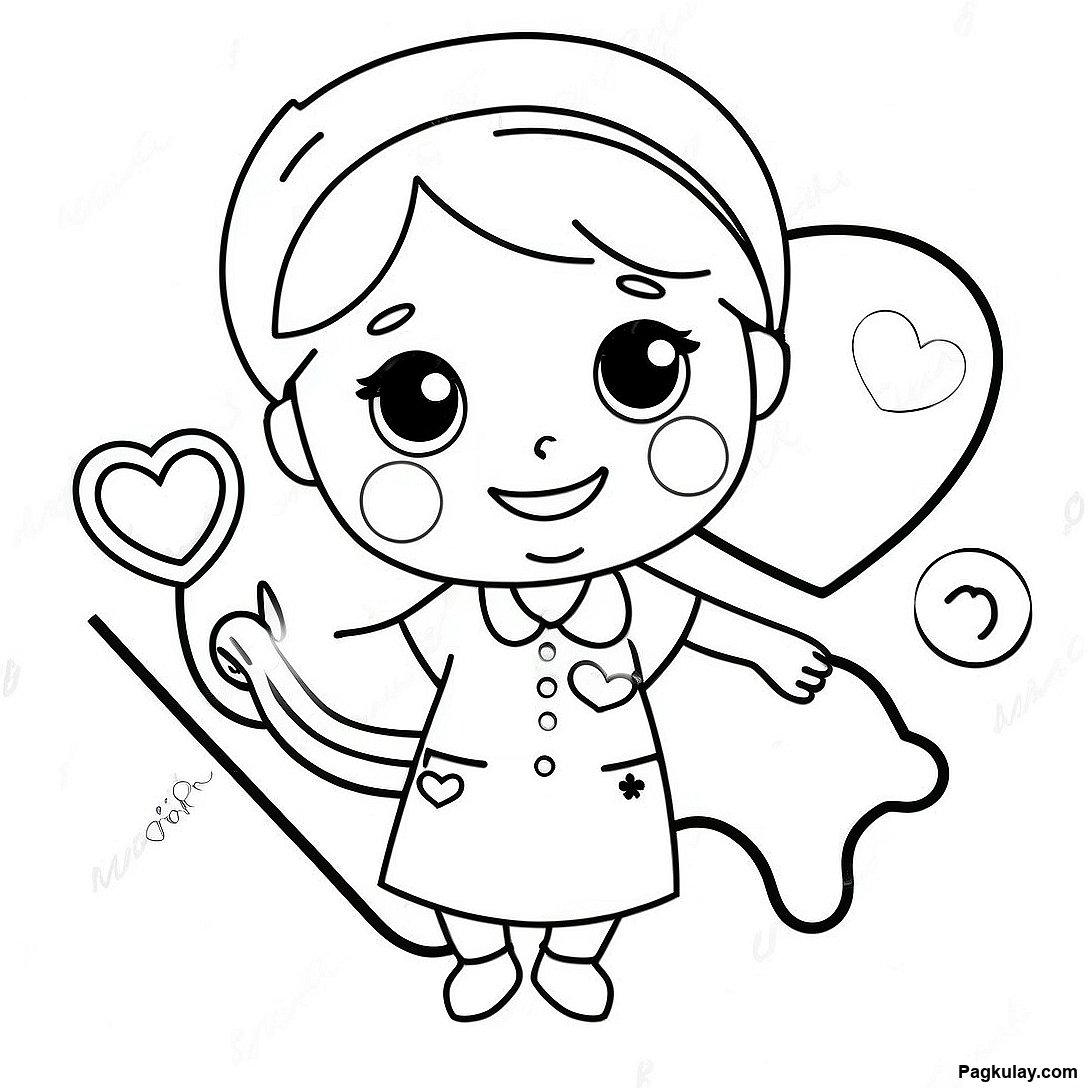 Download Printable PDF of Cute Na Nars Na May Puso Na Pahina Ng Kulay
