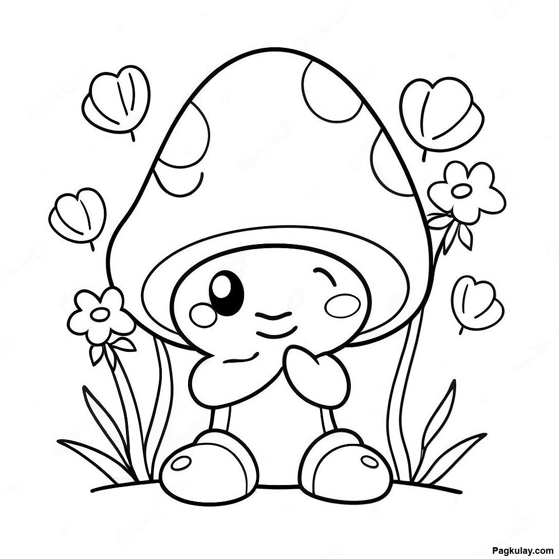 Cute Na Pahina Ng Kulay Ng Gnome Na Kabute Na May Mga Bulaklak