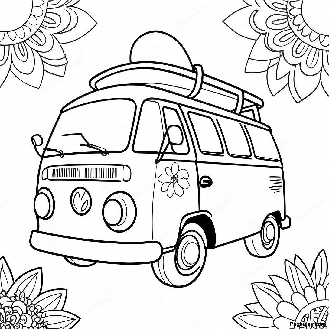 Groovy Hippie Van Na Pahina Ng Kulay