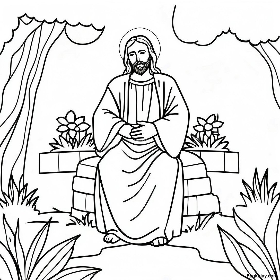 Jesus Sa Isang Mapayapang Hardin Pahina Ng Kulay