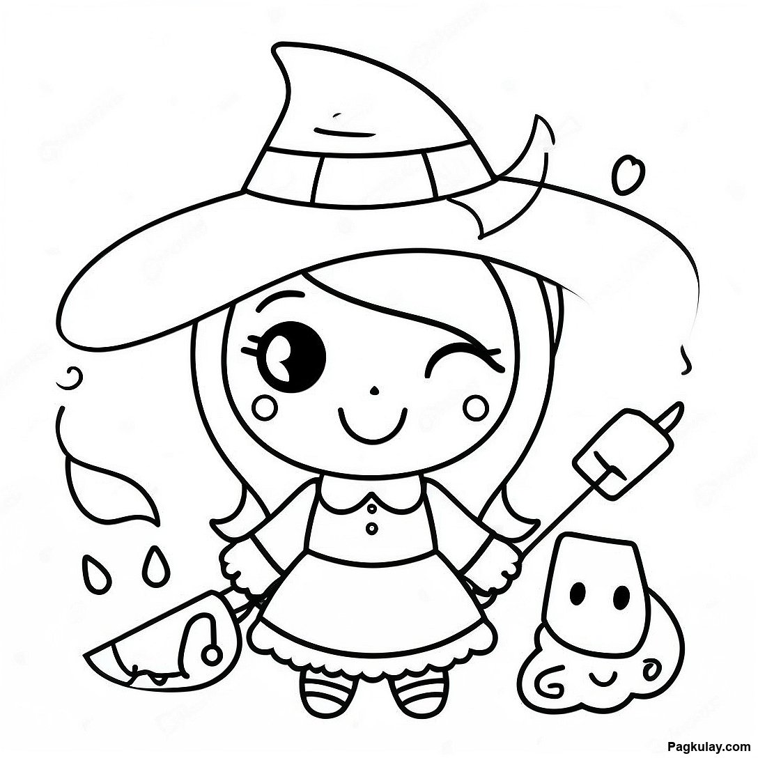 Kaakit-Akit Na Nakakatakot Na Kawaii Na Mangkukulam Pahina Ng Kulay