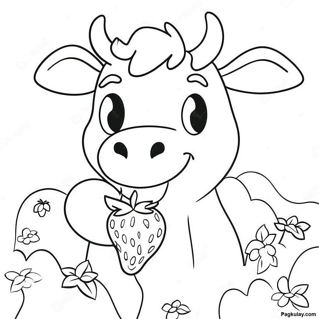 Kaakit Akit Na Strawberry Cow Na Kumakain Ng Mga Strawberry Na Pahina Ng Kulay 80314 22292