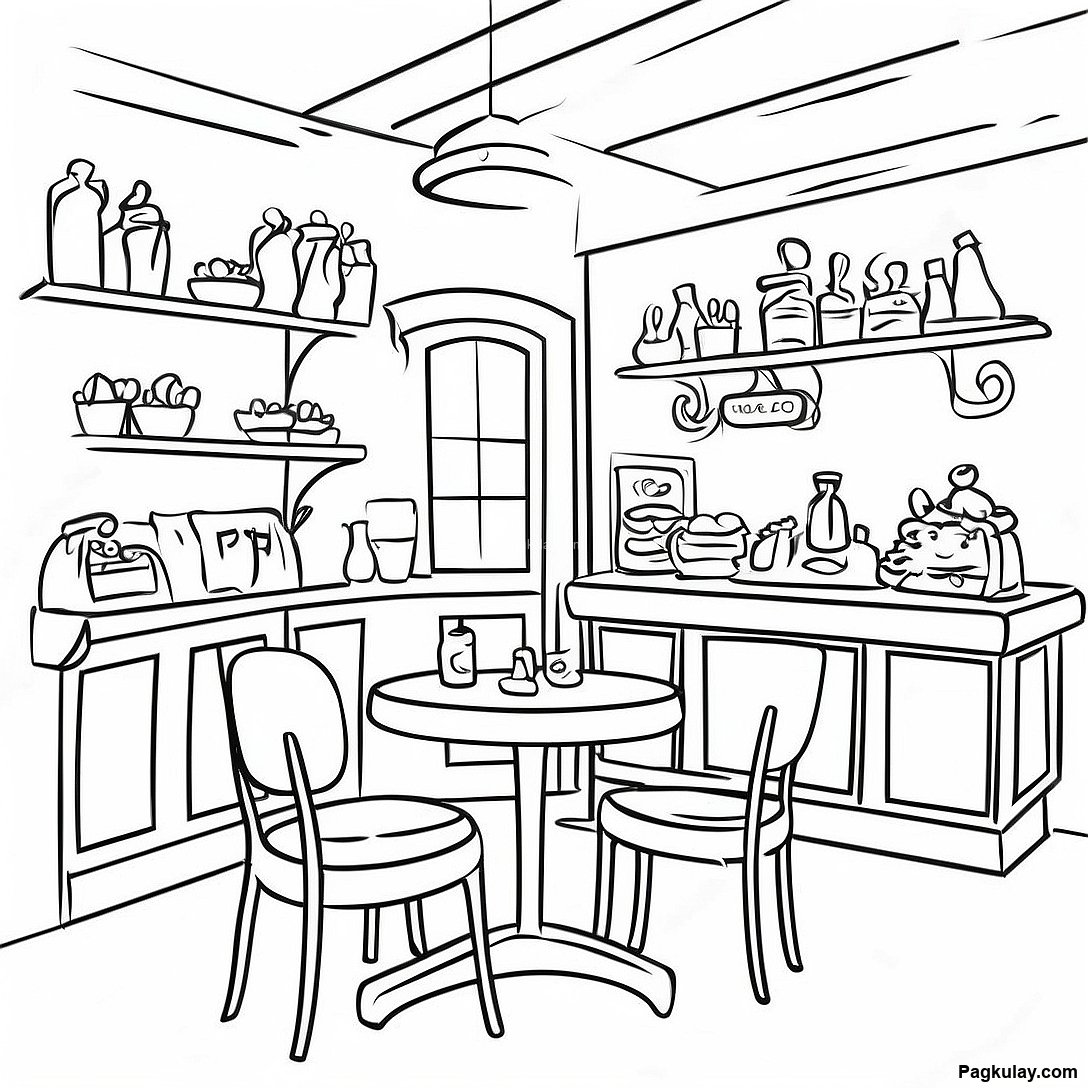 Download Printable PDF of Komportableng Loob Ng Cafe Na Pahina Ng Kulay
