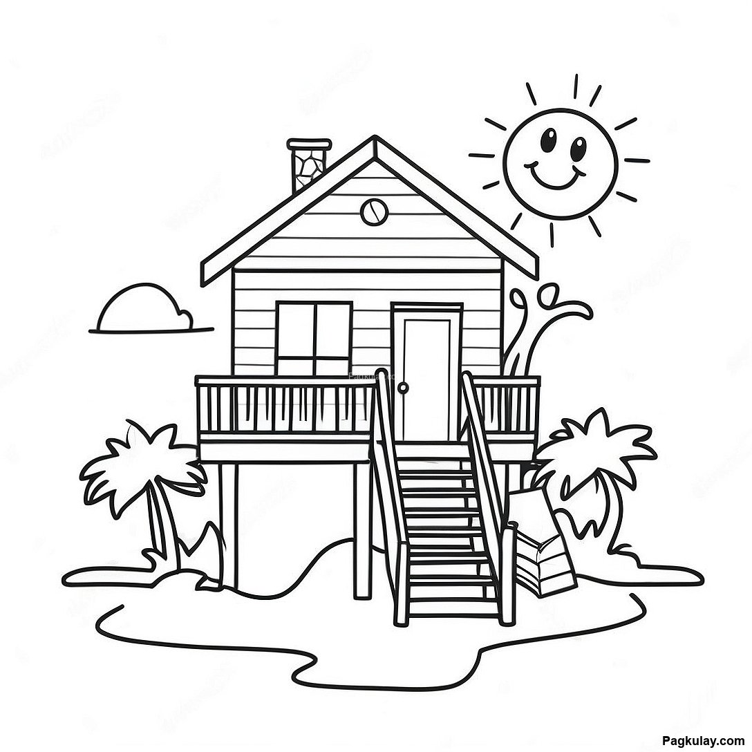 Maaraw Na Beach House Na Pahina Ng Kulay