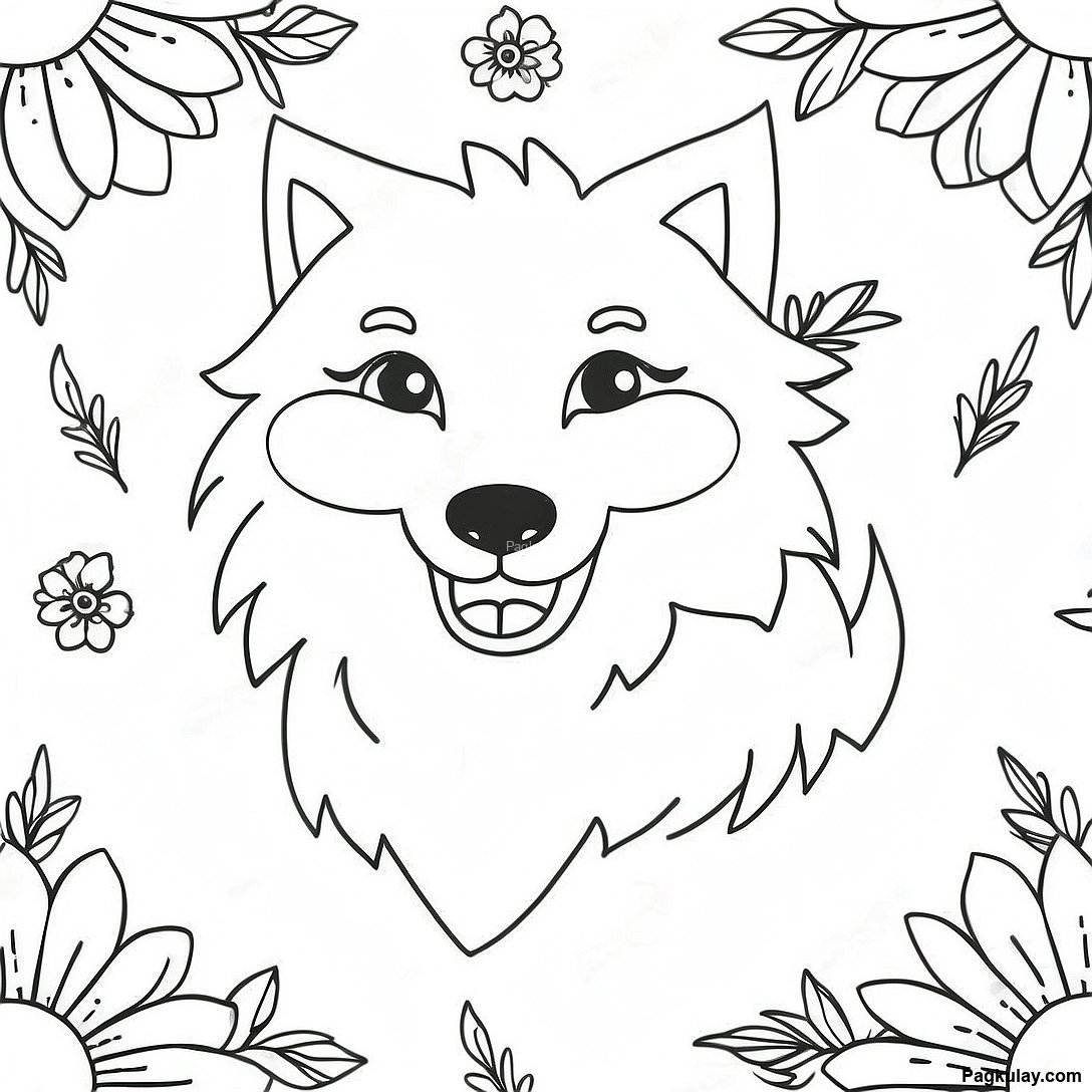 Mabalahibong Wolf Na May Mga Bulaklak Pahina Ng Kulay