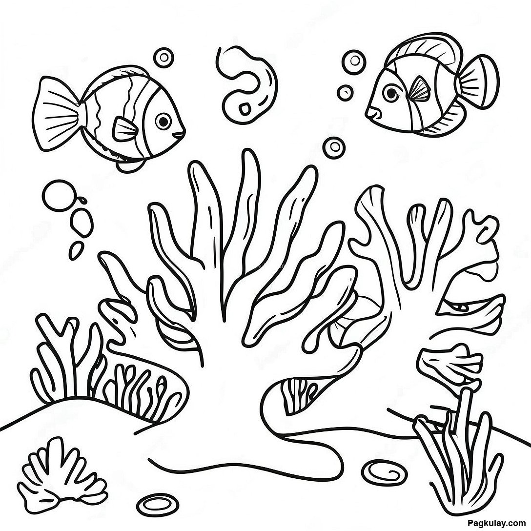 Makulay Na Pahina Ng Kulay Ng Coral Reef Sa Ilalim Ng Tubig