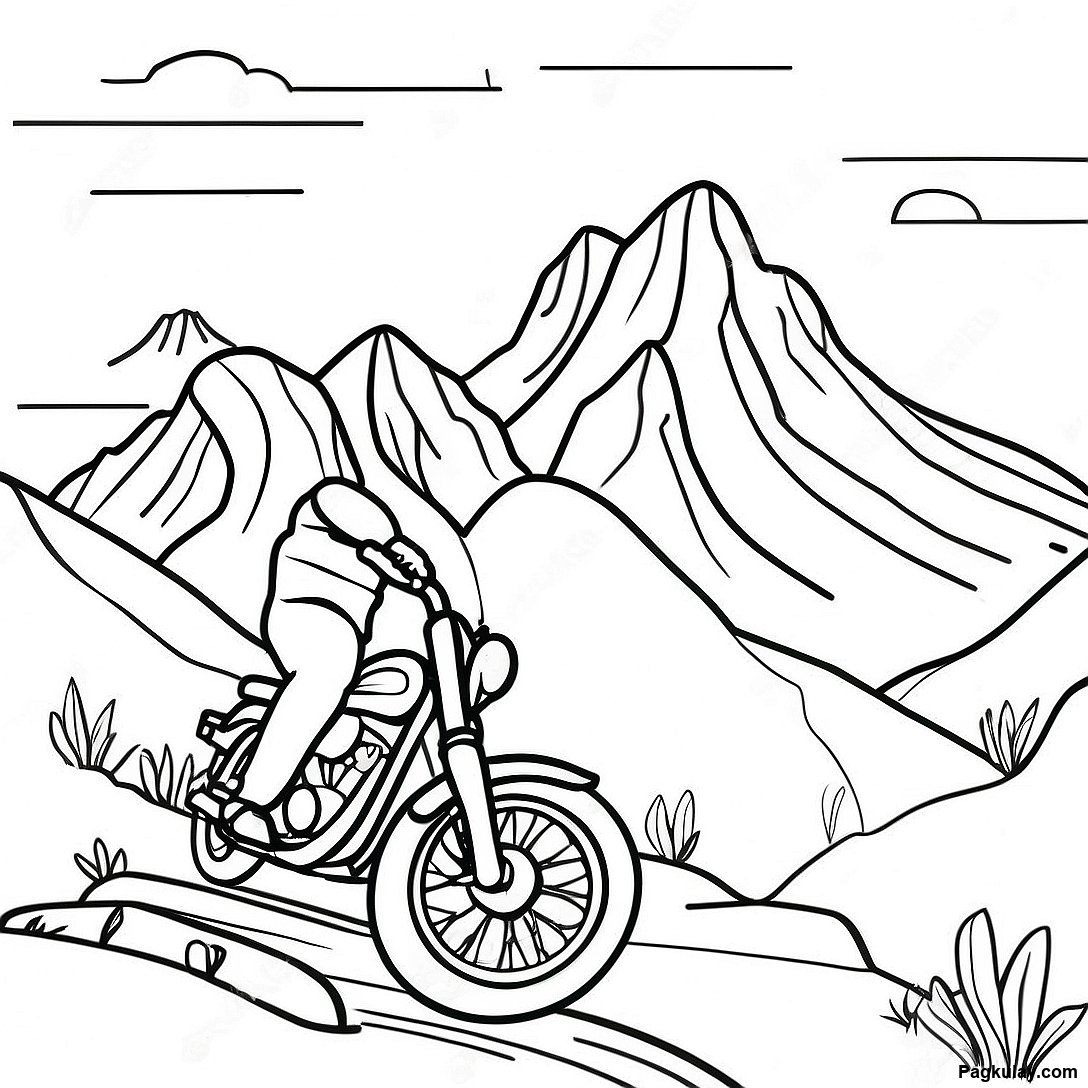 Download Printable PDF of Makulay Na Tanawin Ng Bundok Na May Biker Na Pahina Ng Kulay