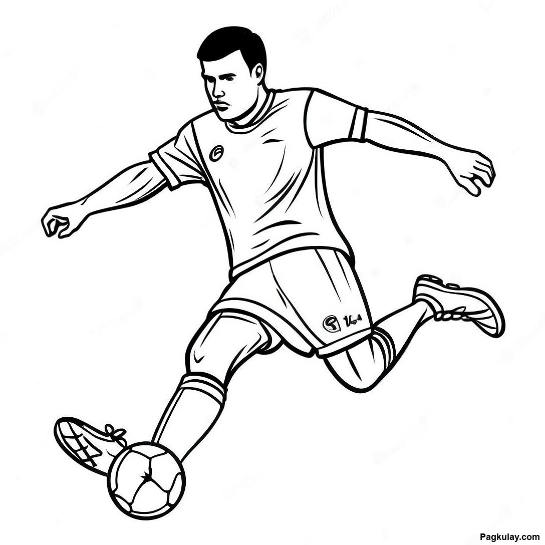 Manlalaro Ng Soccer Na Humahampas Ng Bola Na Pahina Ng Kulay