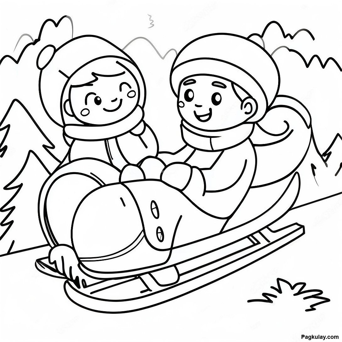 Download Printable PDF of Mapangahas Na Eksena Ng Sledding Na Pahina Ng Kulay