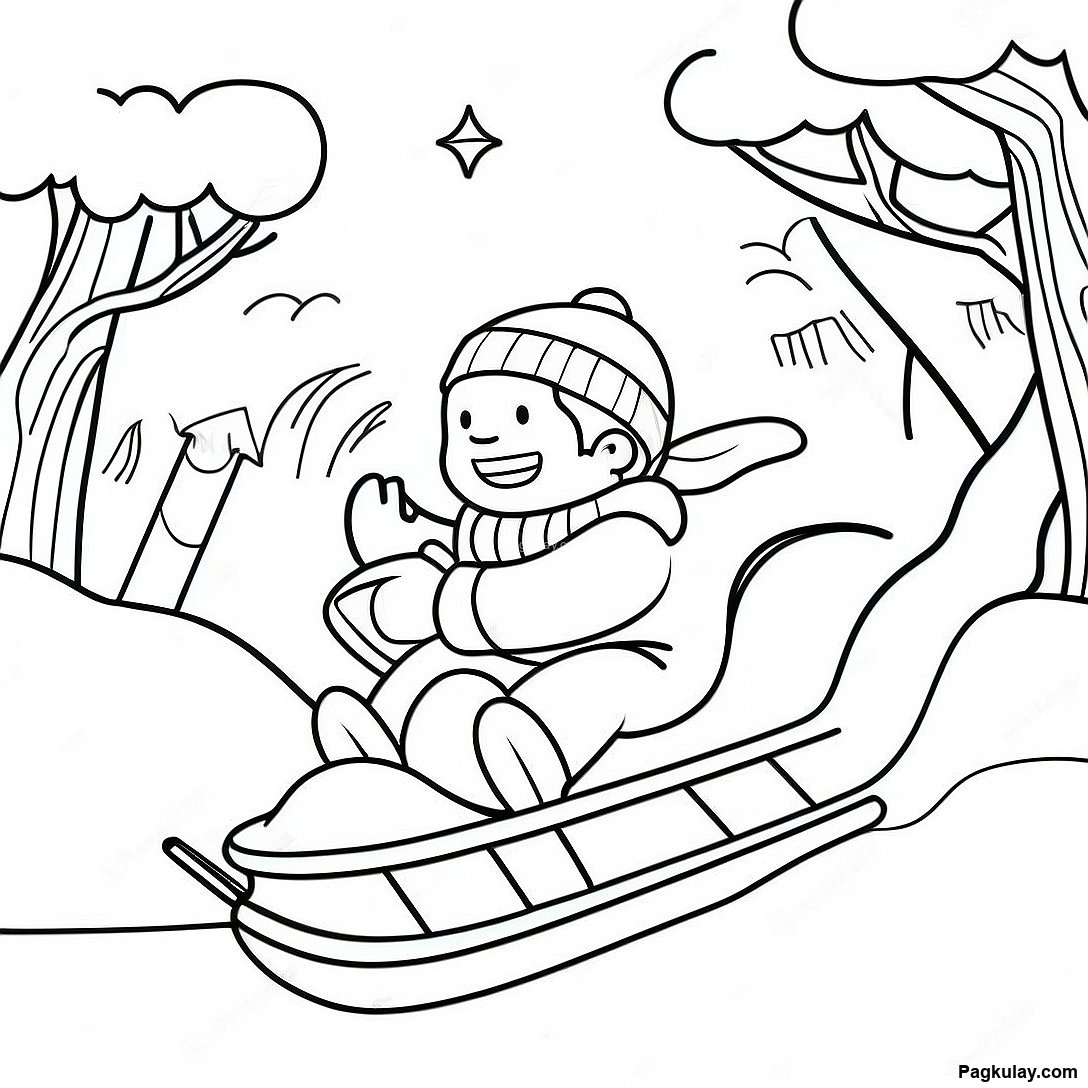 Download Printable PDF of Mapangahas Na Eksena Ng Sledding Na Pahina Ng Kulay