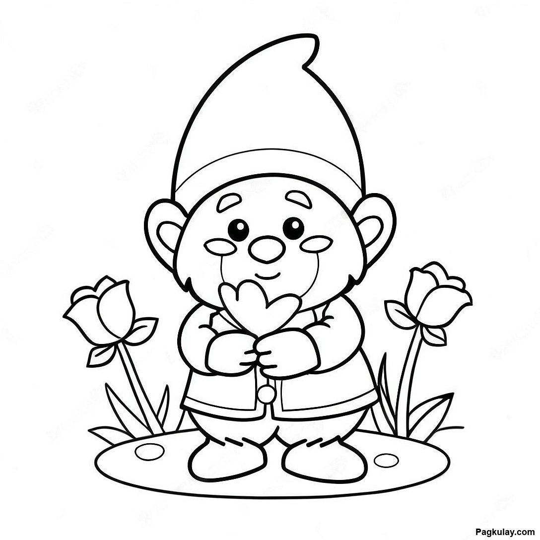 Download Printable PDF of Masayang Gnome Para Sa Araw Ng Mga Puso Na May Hawak Na Bulaklak