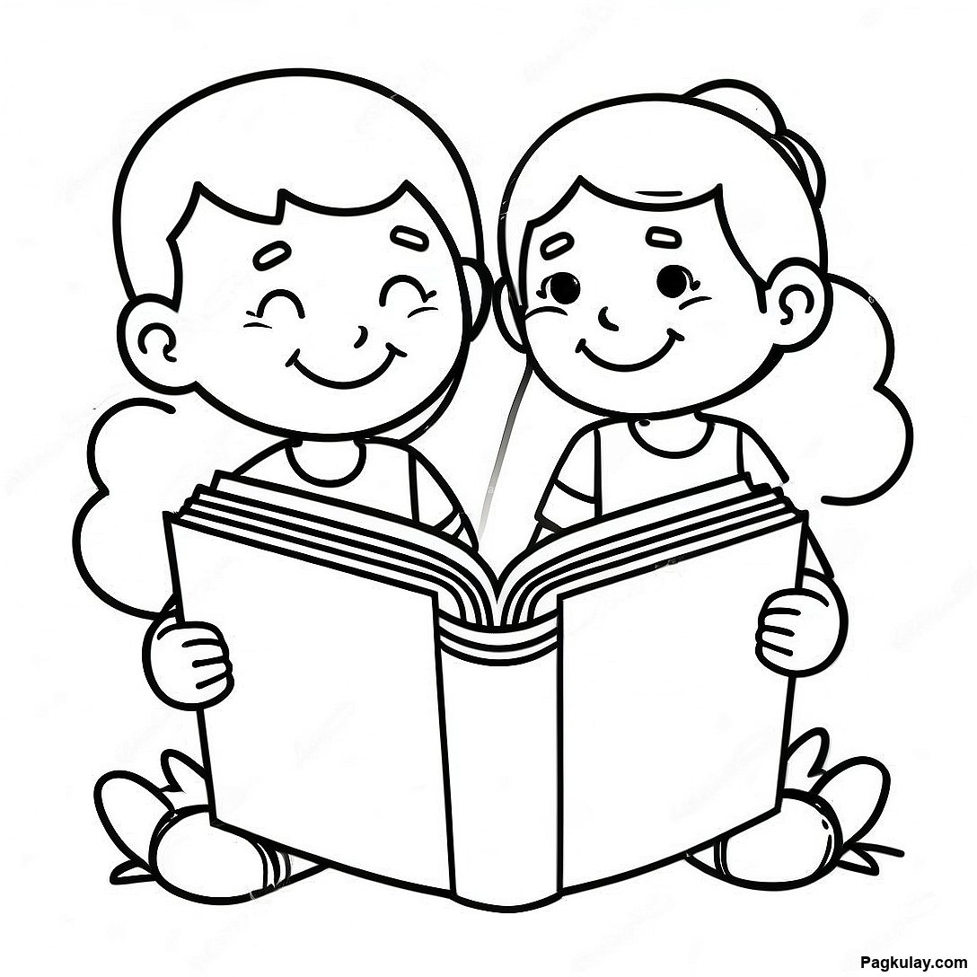Masayang Mga Bata Na Nagbabasa Pahina Ng Kulay 130482 63437