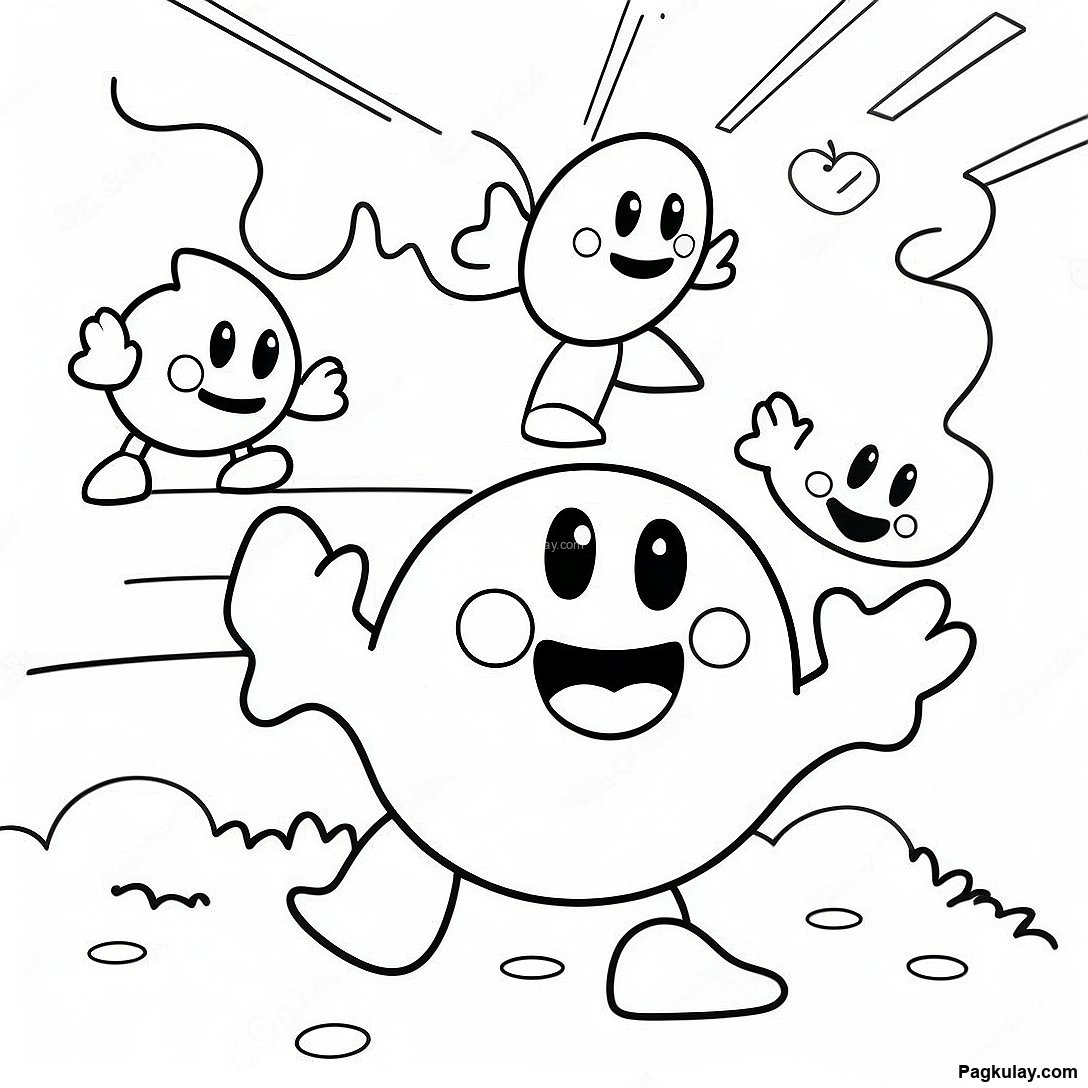 Masayang Pacman Na Nagtatagu-Tago Sa Mga Multo Na Pahina Ng Kulay