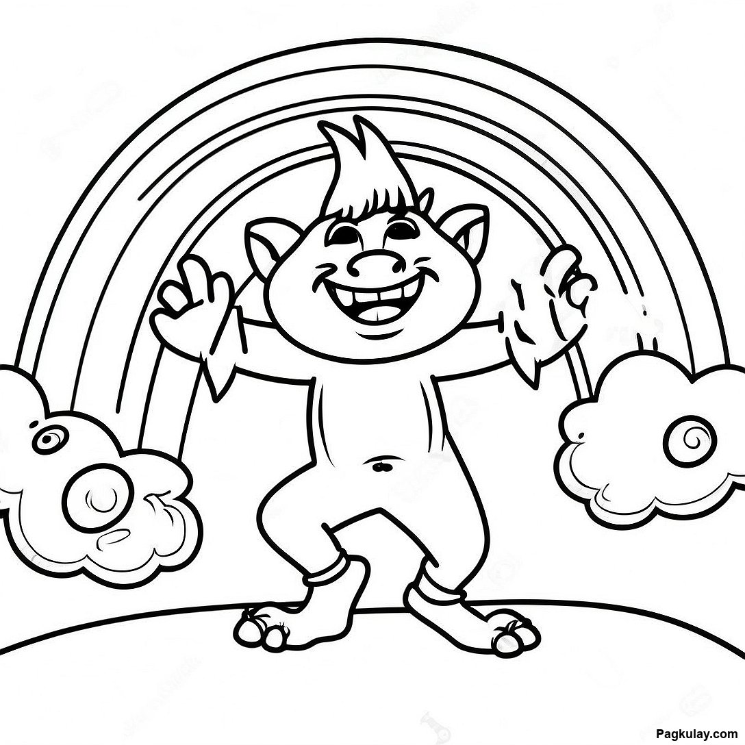 Masayang Troll Na Nagsasayaw Sa Ilalim Ng Bahaghari Na Pahina Ng Kulay