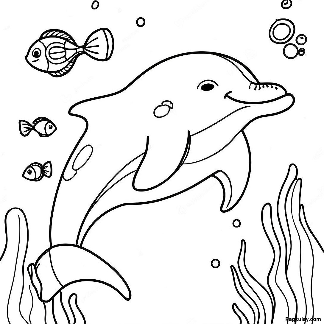 Masiglang Pahina Ng Kulay Ng Dolphin Na Nagsiswimming Sa Ilalim Ng Tubig