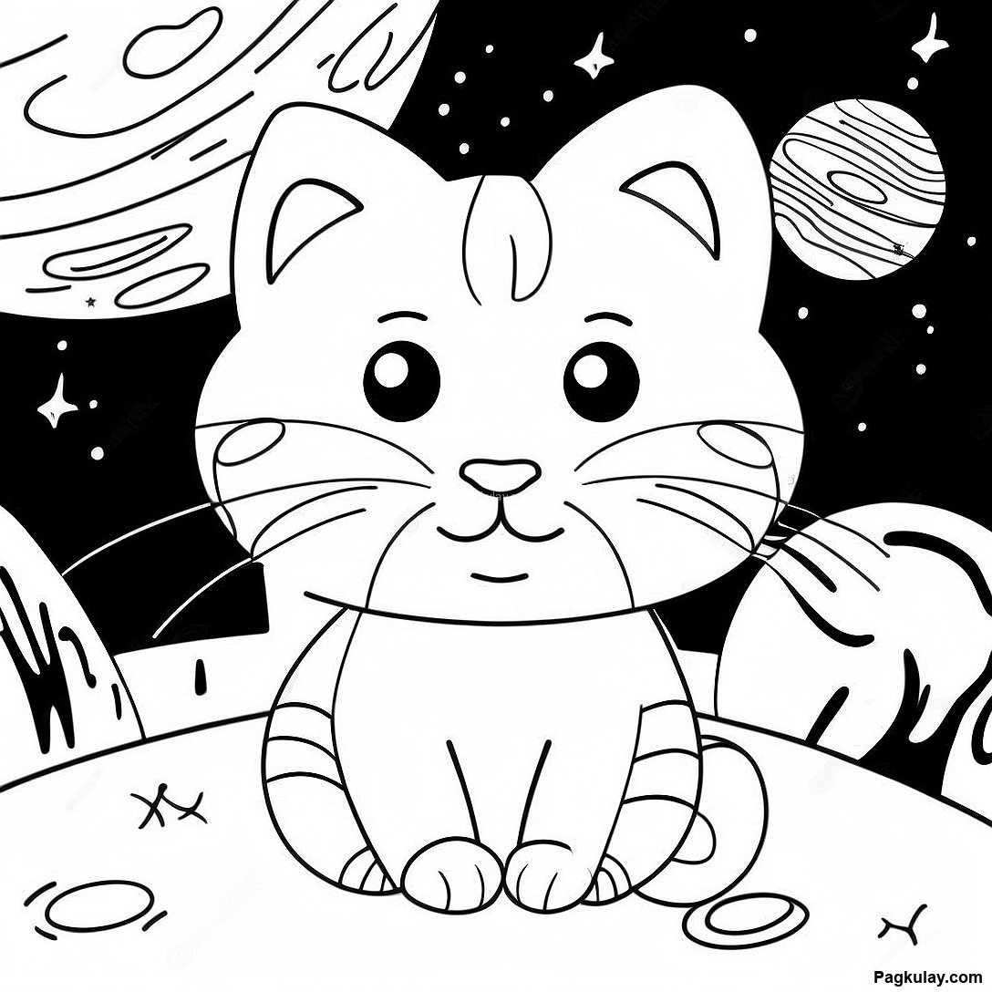 Download Printable PDF of Nagtatanong Na Pusa Sa Kalawakan Na Nagsasaliksik Ng Mga Planeta Na Pahina Ng Kulay