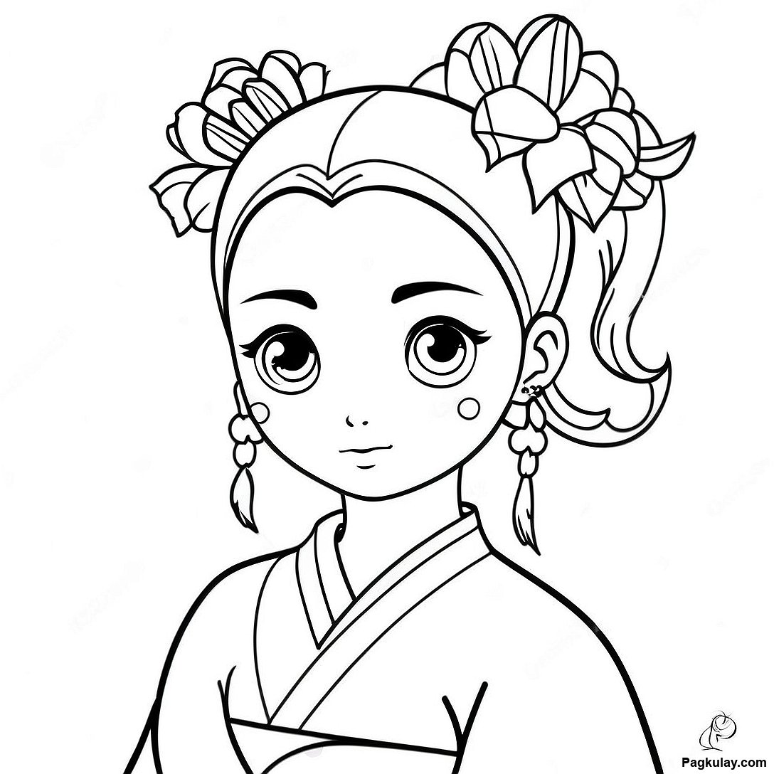 Download Printable PDF of Nezuko Na May Flower Hairpin Pahina Ng Kulay