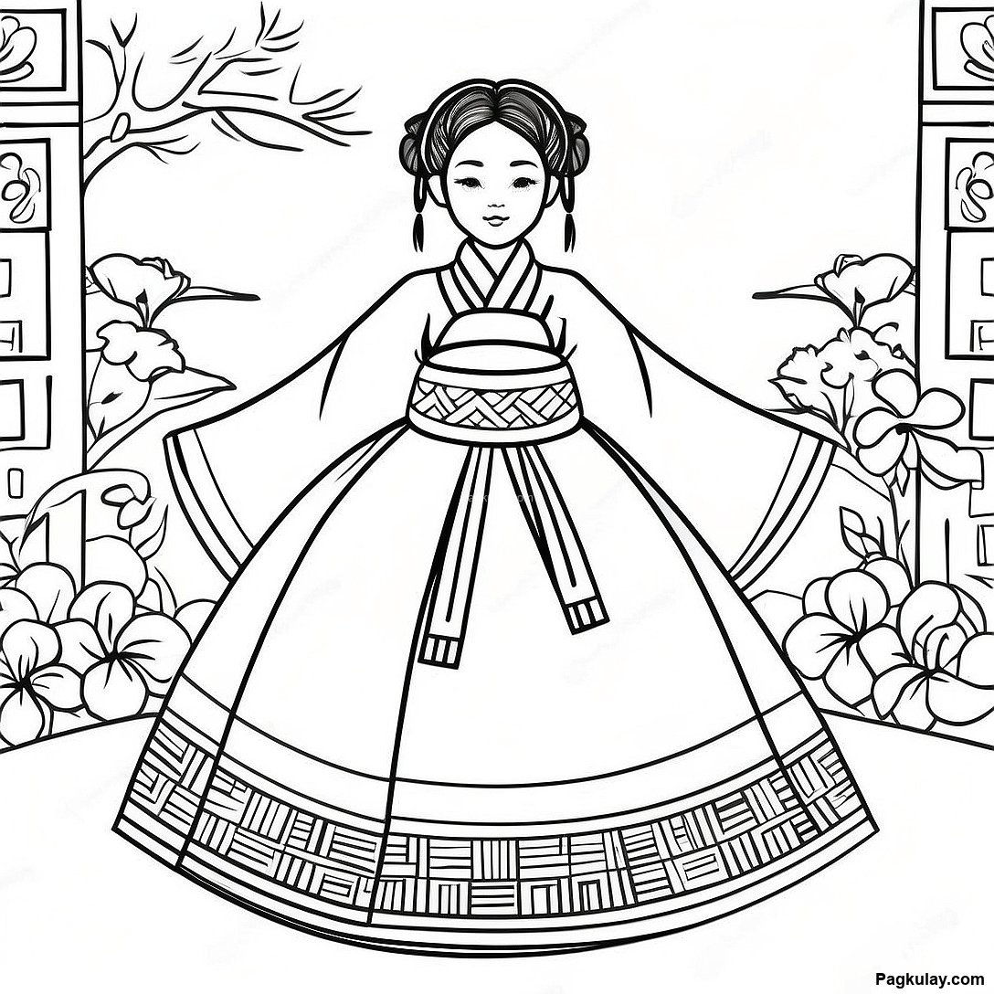 Pahina Ng Kulay Na Tradisyunal Na Hanbok Ng Koreano 107973 45016