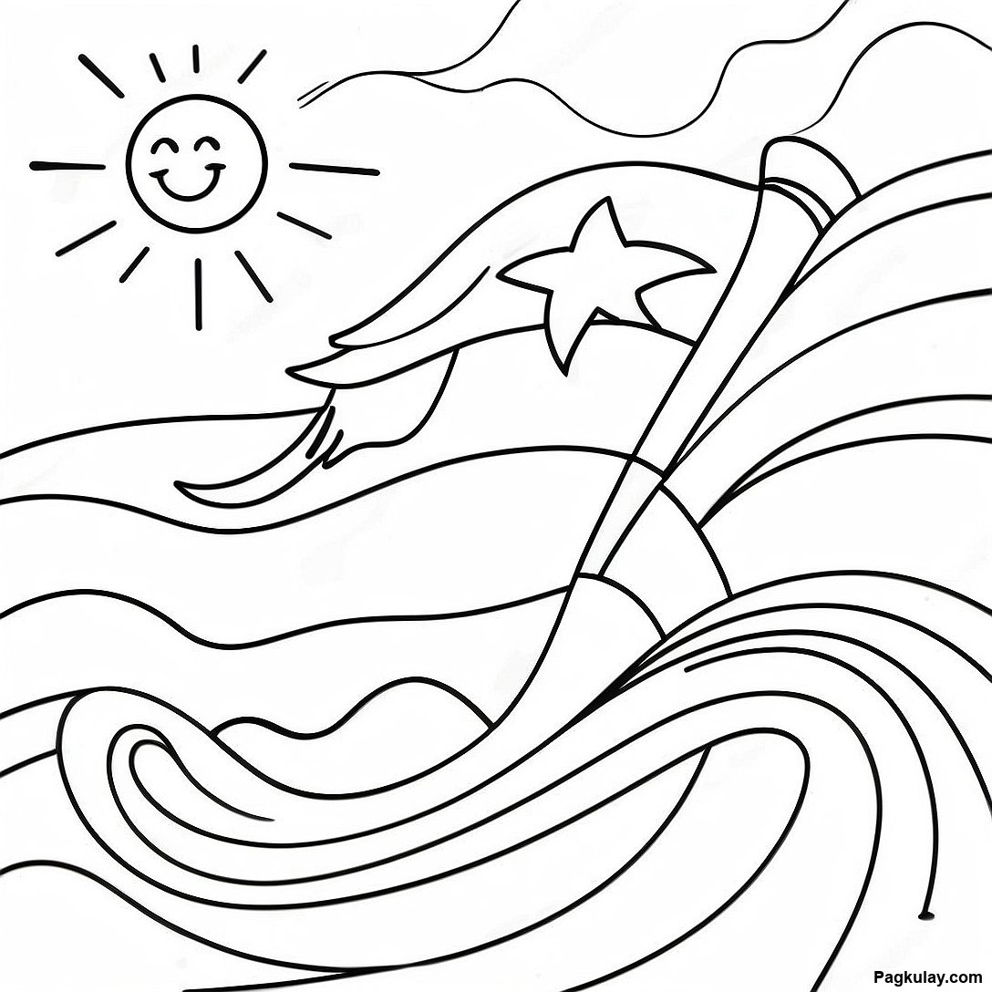 Pahina Ng Kulay Ng Bandila Ng Cuba Na May Araw At Alon