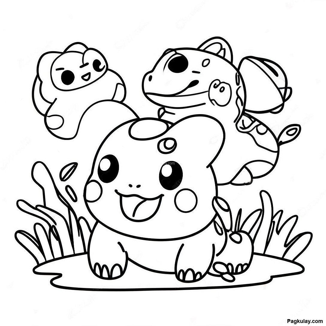 Download Printable PDF of Pahina Ng Kulay Ng Bulbasaur Na Naglalaro Kasama Ang Mga Kaibigan