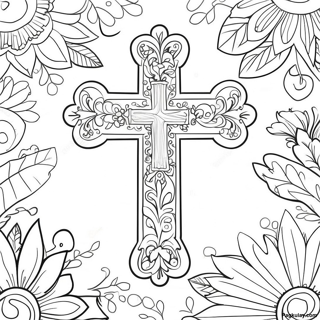 Pahina Ng Kulay Ng Makulay Na Krus Na May Mga Bulaklak