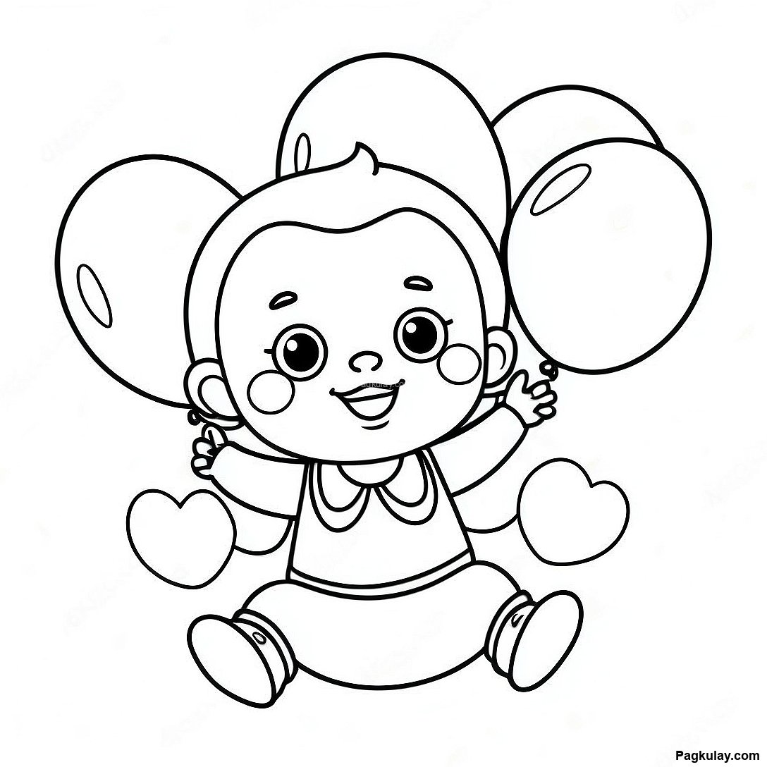 Download Printable PDF of Pahina Ng Kulay Ng Masayang Sanggol Na May Mga Lobo