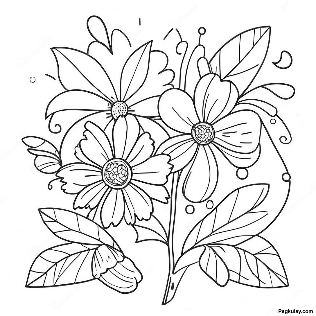 Cute na Cartoon na Bulaklak sa Pahina ng Kulay