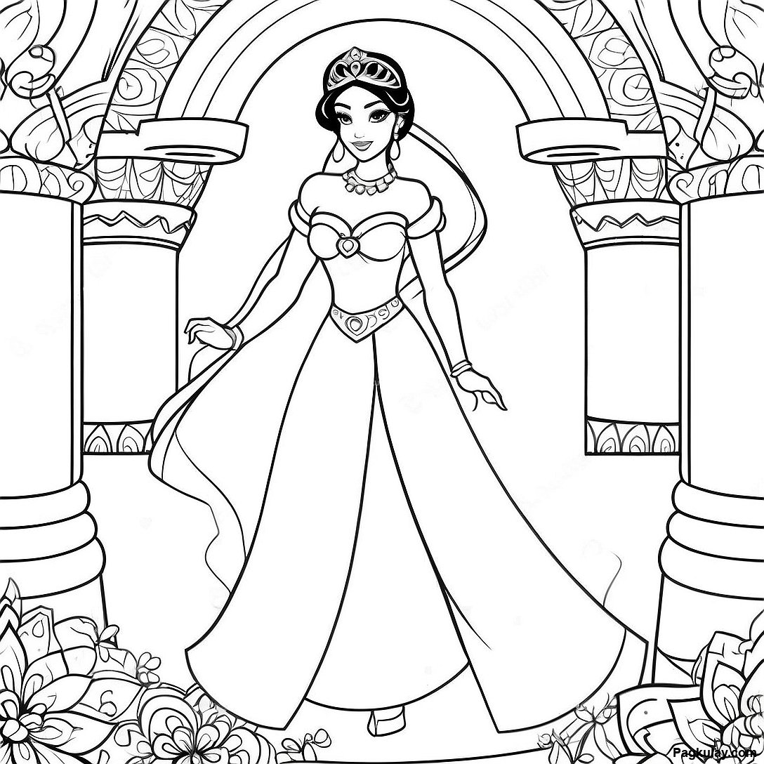 Pahina Ng Kulay Ng Prinsesa Jasmine Sa Magandang Damit