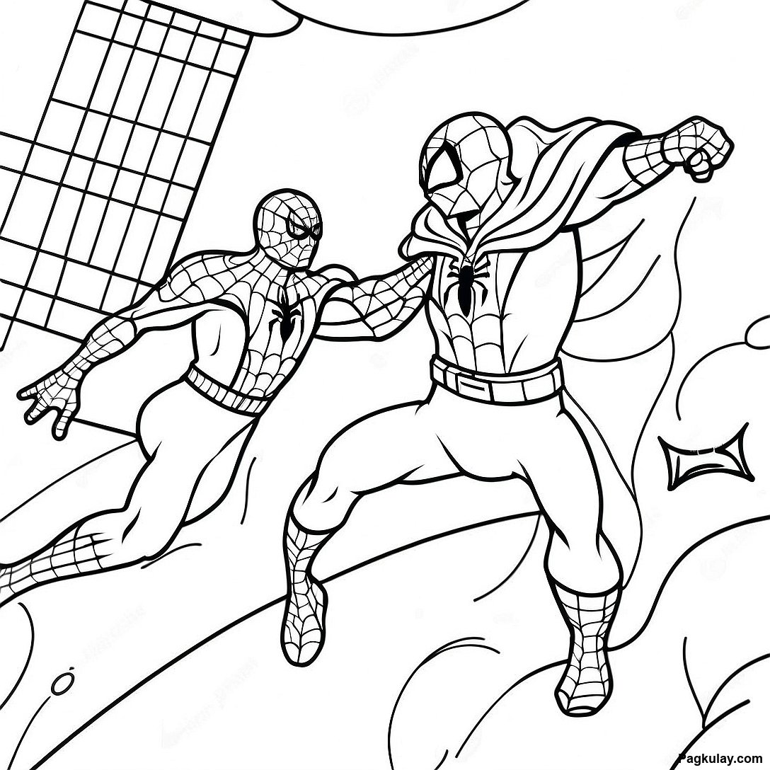 Spider Man na Nakikipaglaban sa mga Kaaway na Pahina ng Kulay