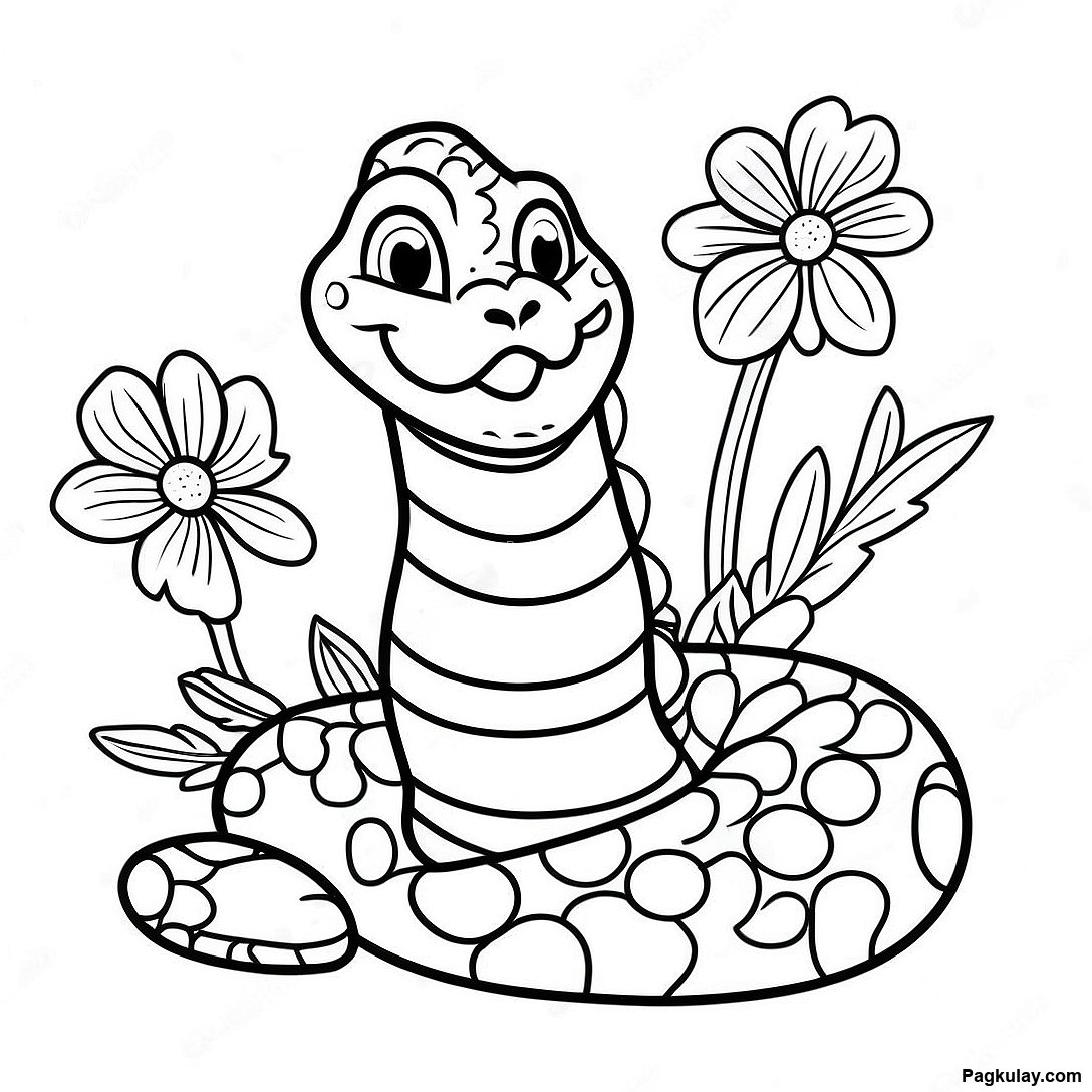 Palakaibigang Pahina Ng Kulay Ng Rattlesnake Kasama Ang Mga Bulaklak 131462 64200