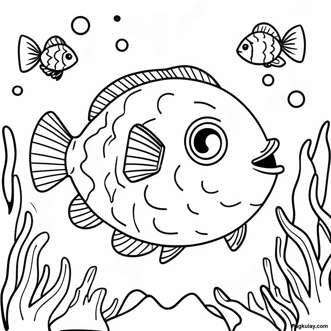Puffer Fish Sa Coral Reef Na Pahina Ng Kulay