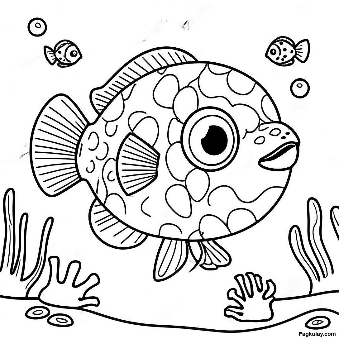 Download Printable PDF of Puffer Fish Sa Coral Reef Na Pahina Ng Kulay