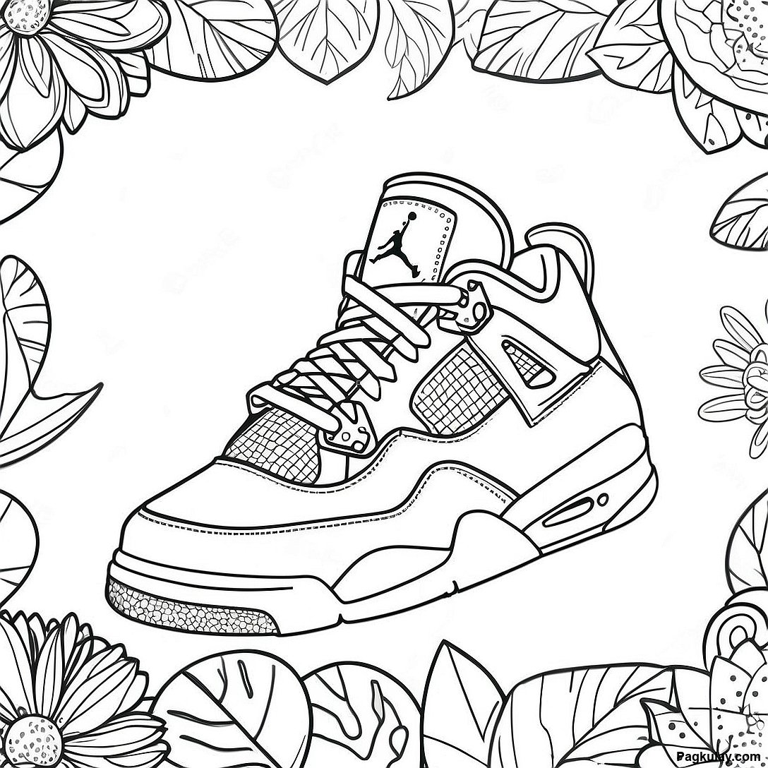 Download Printable PDF of Retro Jordan 4 Sneaker Coloring Page