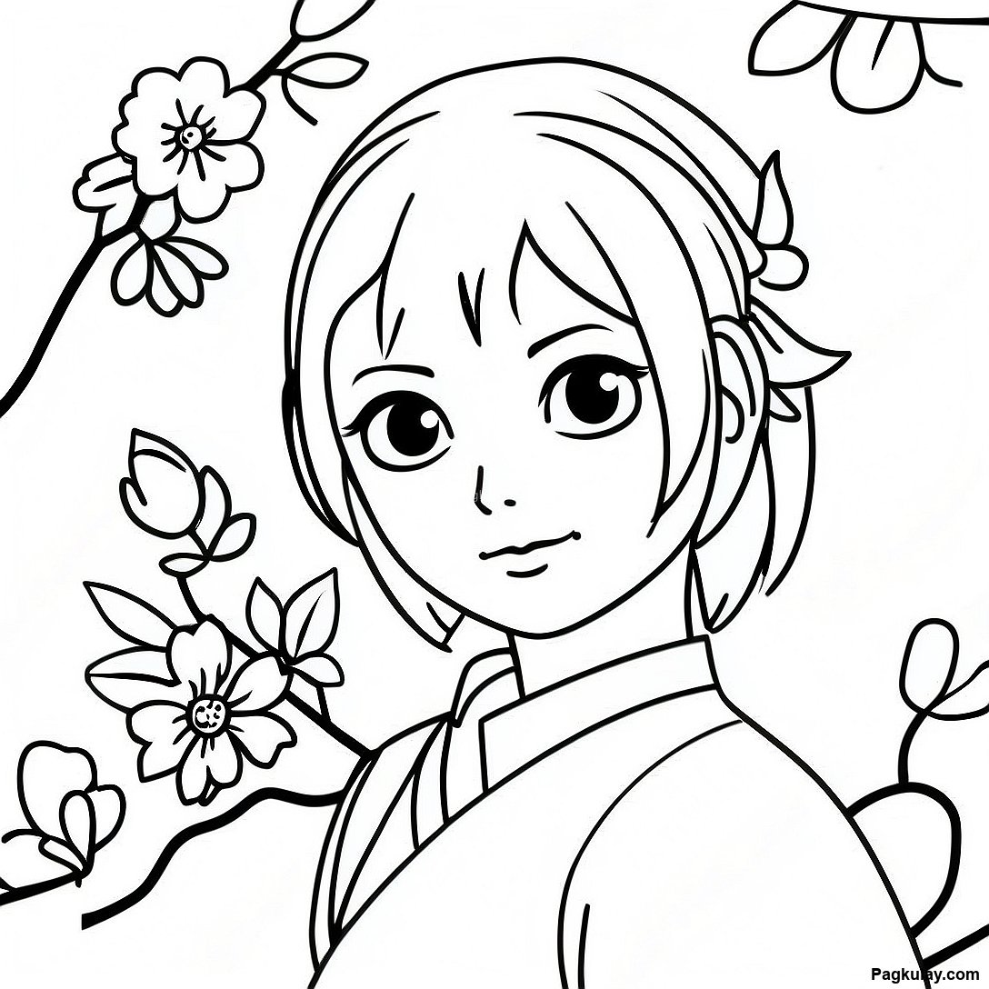 Download Printable PDF of Sakura Haruno Kasama Ang Mga Cherry Blossom Na Pahina Ng Kulay