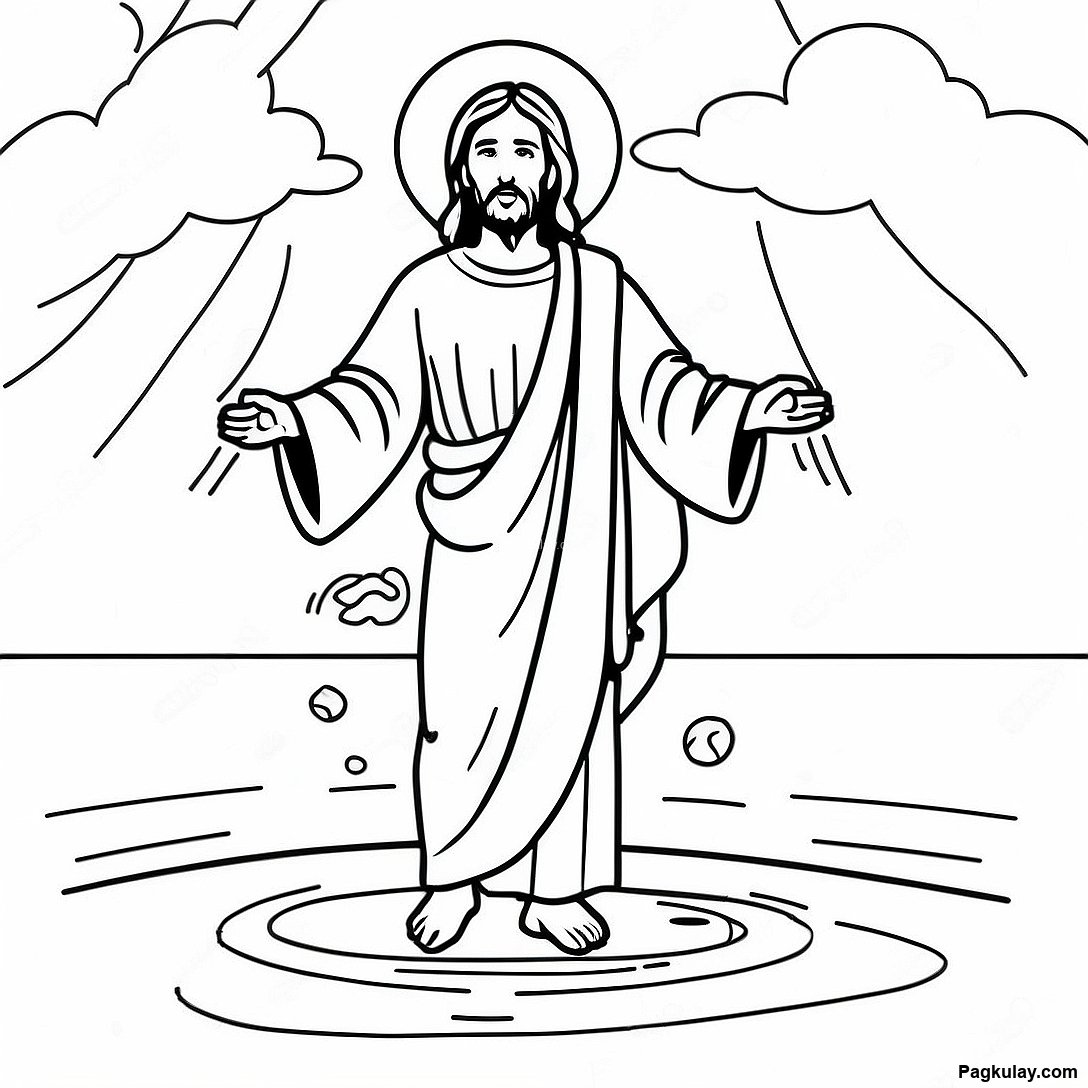 Si Jesus Na Naglalakad Sa Tubig Sa Pahina Ng Kulay