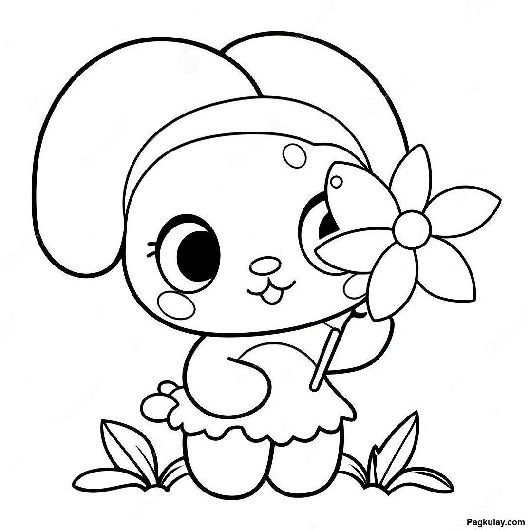 Si My Melody Na May Hawak Na Bulaklak Na Pahina Ng Kulay