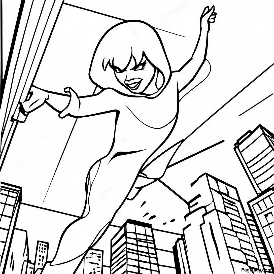Spider Gwen Na Nagsaswing Sa Lungsod Na Pahina Ng Kulay