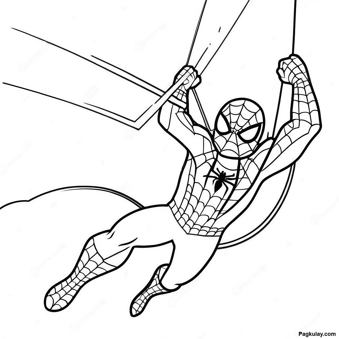 Spiderman Na Nagsaswing Na May Pag Ibig Pahina Ng Kulay