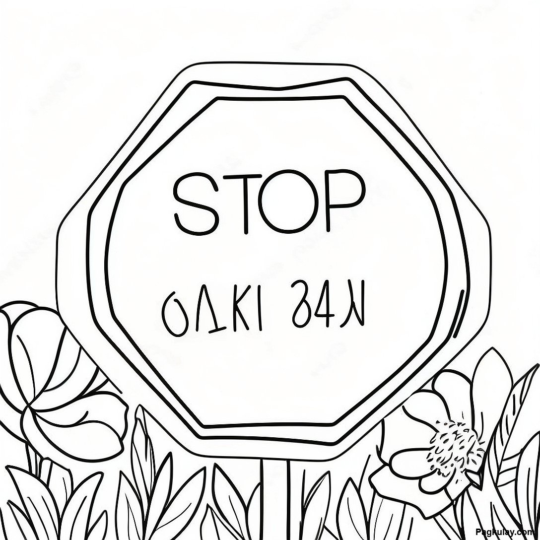 Stop Sign Na Napapalibutan Ng Mga Bulaklak Na Pahina Ng Kulay