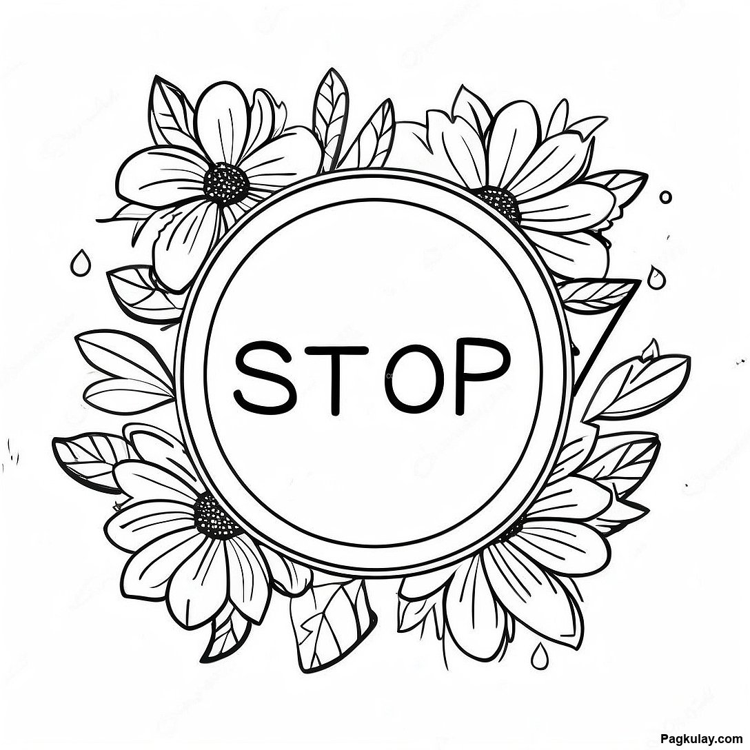 Stop Sign Na Napapalibutan Ng Mga Bulaklak Na Pahina Ng Kulay 87418 27939