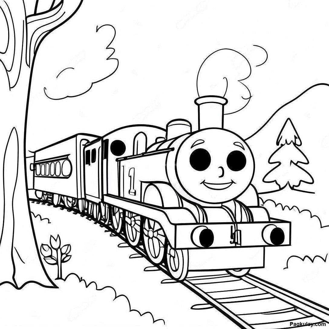 Thomas Ang Tank Engine Sa Makulay Na Tanawin Coloring Page