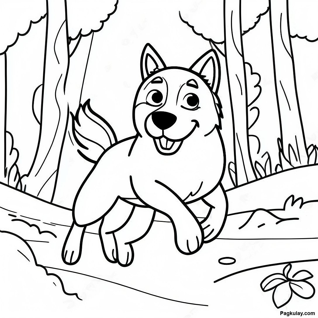 Download Printable PDF of Tumatakbong Husky Sa Gubat Na Pahina Ng Kulay